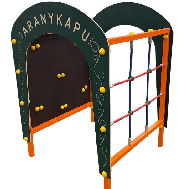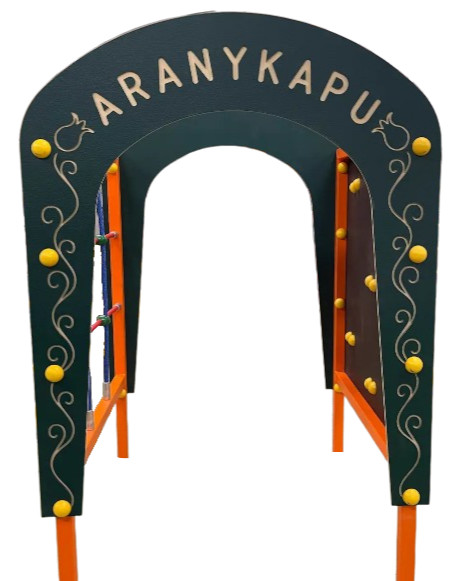 Ez a népszerű gyerekdal ihlette ezt a kisgyermekek számára tervezett játékelemet melyet bölcsődék és óvodák számára terveztünk. Az "Aranykapu" felirattal ellátott mászókán zöld ág és zöld levelecske motívumokkal díszített kapukon keresztül lehet átbújni a két oldalát mászóhálóval és mászókövekkel felszerelt mászófalon próbálhatják ki az ügyességüket a gyerekek.