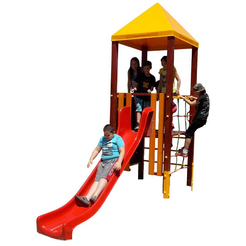 Az őrtorony egy négyoldalú többfunkciós játszótéri eszköz, melynek egyik oldalán egy 16 mm-es vastagságú acélbetétes kötélből készült mászóháló található, a szemközti oldalán pedig egy mászófal került kialakításra különböző formájú és nagyságú kapaszkodó elemekből. Az őrtorony másik oldalán három fokú létra segíti a feljutást, és a szemközti oldalon poliészter beülőkaros csúszdalap található. A torony alsó része a gyerekek által kisházként is használható. Torony teljes magassága a talajsíktól mérve: 3400 mm. Dobogó magassága a talajsíktól mérve: 1200 mm.