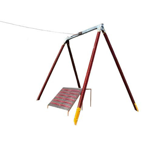 A játék rögzítése a porfestett acél tartólábak betonozásával történik. A biztonságos használathoz elengedhetetlen a beton kötési idejének (kb. 10-15 nap) betartása. A drótkötél feszessége a telepítés után is precízen szabályozható.