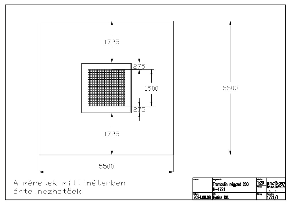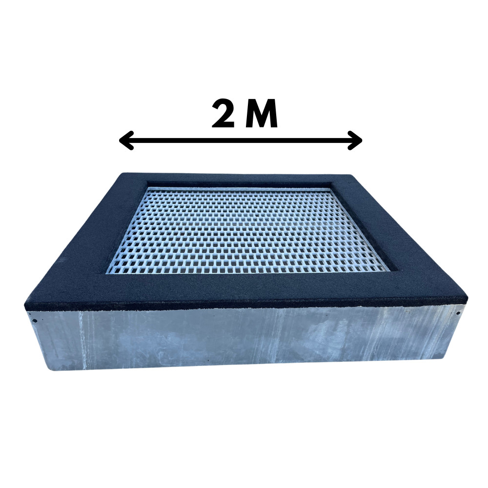 The edges of the jumping mat are covered with a 40 mm thick EPDM/SBR border, bonded to the frame with a polyurethane-based adhesive.